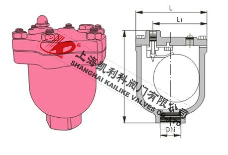 2、單桿式微量排氣閥,為一類似橢圓形閥體,內部所有零件包括浮球、杠桿、杠架、閥座、等均為304S.S不銹鋼,內部使標準排氣孔徑1/16",適合用于PN16工作壓力環璋。