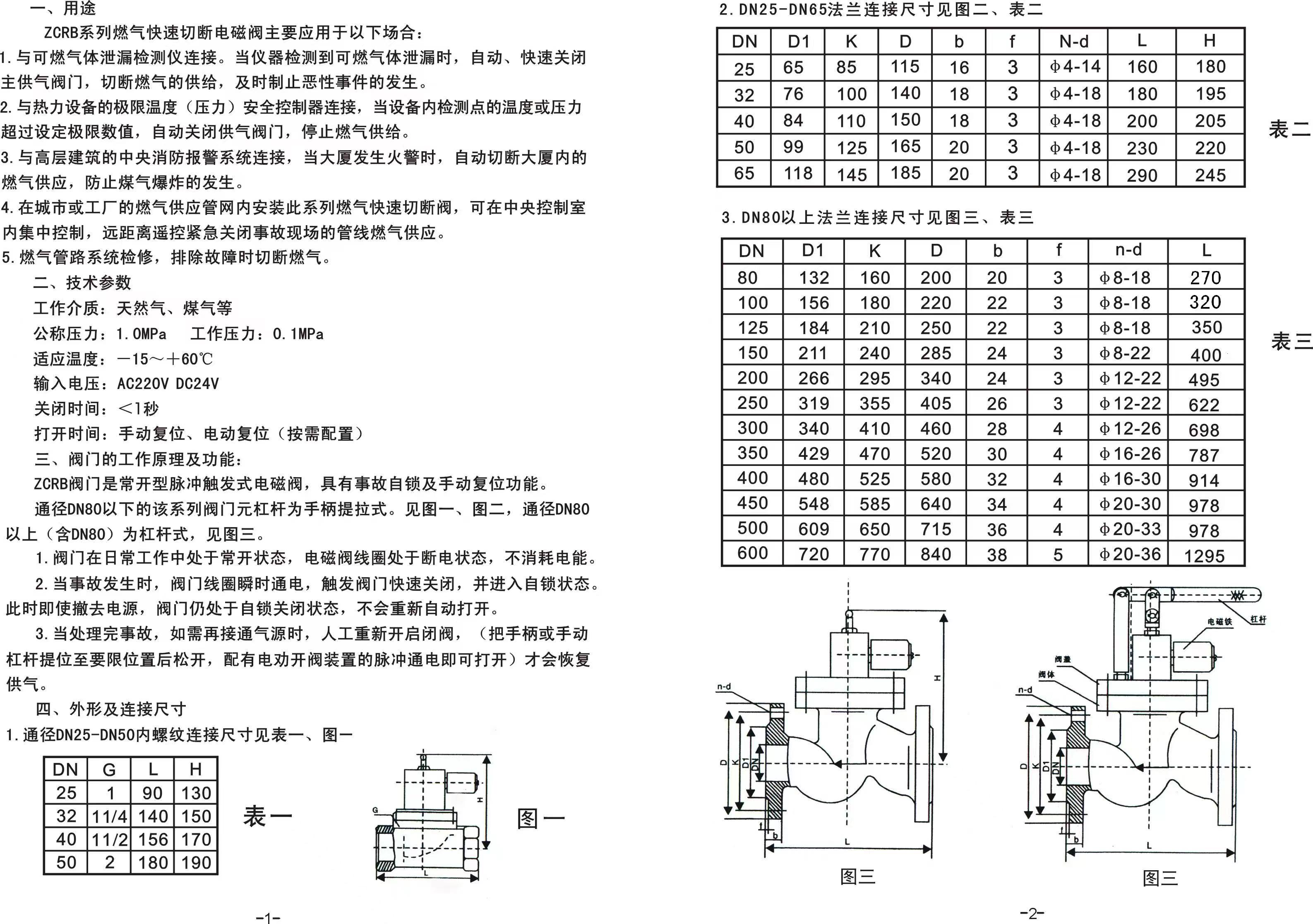 燃?xì)怆姶砰y,燃?xì)饩o急切斷電磁閥工作原理及特點(diǎn)使用說(shuō)明書(shū)(圖)